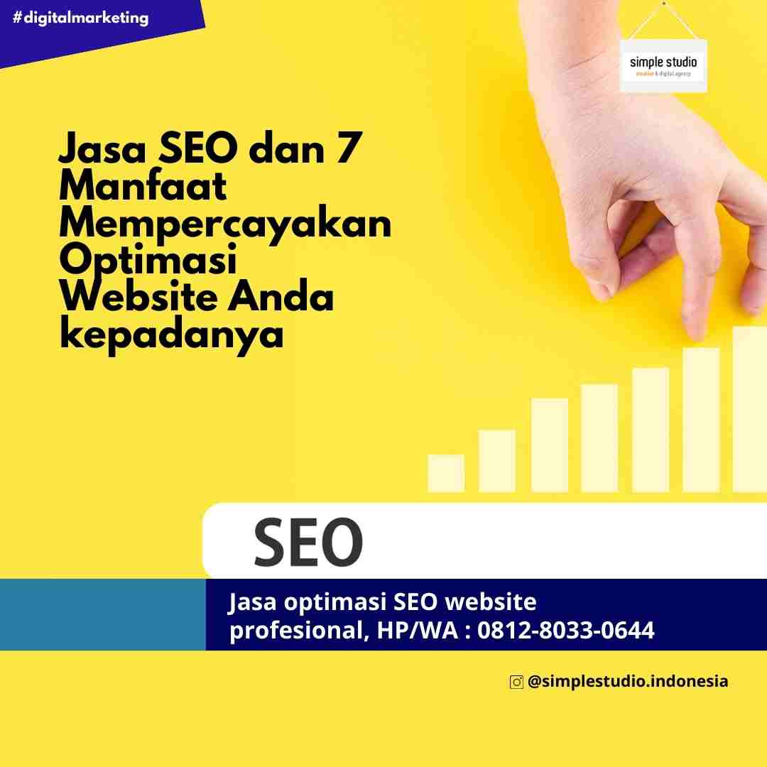 Percayakan optimasi web Anda kepada pakar google / jasa seo website profesional bergaransi terbaik dan terpercaya, Simple Studio Indonesia. Kami melayani wilayah Jakarta (Timur, Barat, Utara, Selatan, Pusat), Bekasi, Depok, Tangerang, Bogor dan seluruh wilayah di Indonesia. Silakan hubungi kami di HP/WA : 0812-8033-0644.